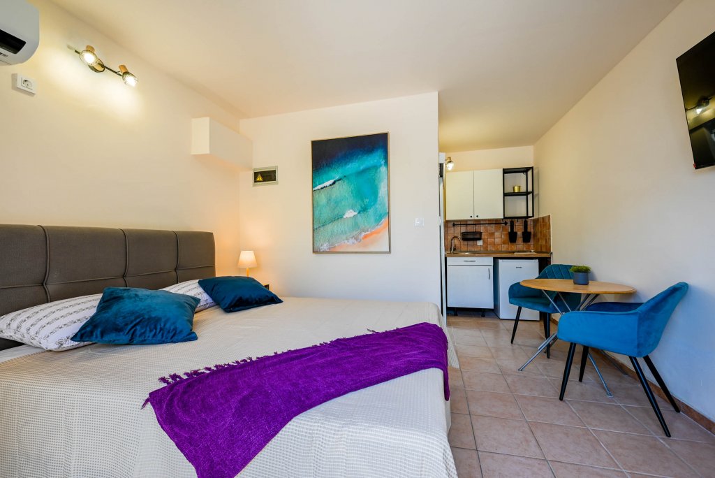 Marko & Toni Studio 6Welcome to our beautiful rental house located at just a minute's walk from the beach and steps away from Rovinj’s famous Martin Horvat Hospital. This charming house features 9 modern and comfortably furnished apartments, perfect for couples, families, or groups looking to enjoy the scenic beauty of Rovinj. Each apartment is fully equipped with air conditioning, free Wi-Fi, and tasteful decor that blends comfort with Mediterranean style. Whether you're looking for a cozy retreat or a spacious base for your holiday adventures, you'll find the right fit here: 4 Studio Apartments – Ideal for solo travelers or couples 3 One-Bedroom Apartments – Perfect for small families or longer stays 2 Two-Bedroom Apartments – Spacious options for families or groups The house is well-maintained and offers a peaceful atmosphere, surrounded by greenery and a relaxing coastal vibe.