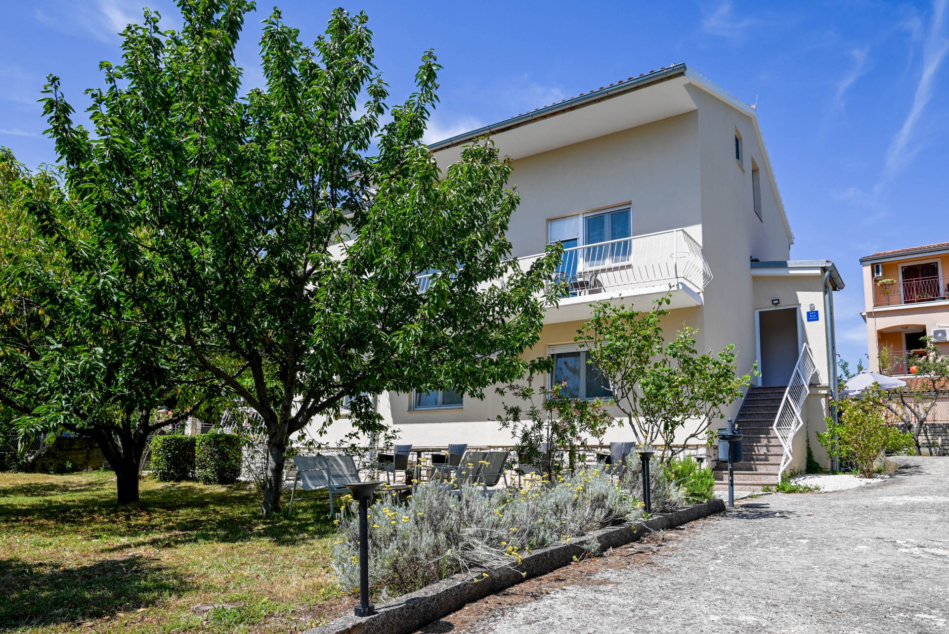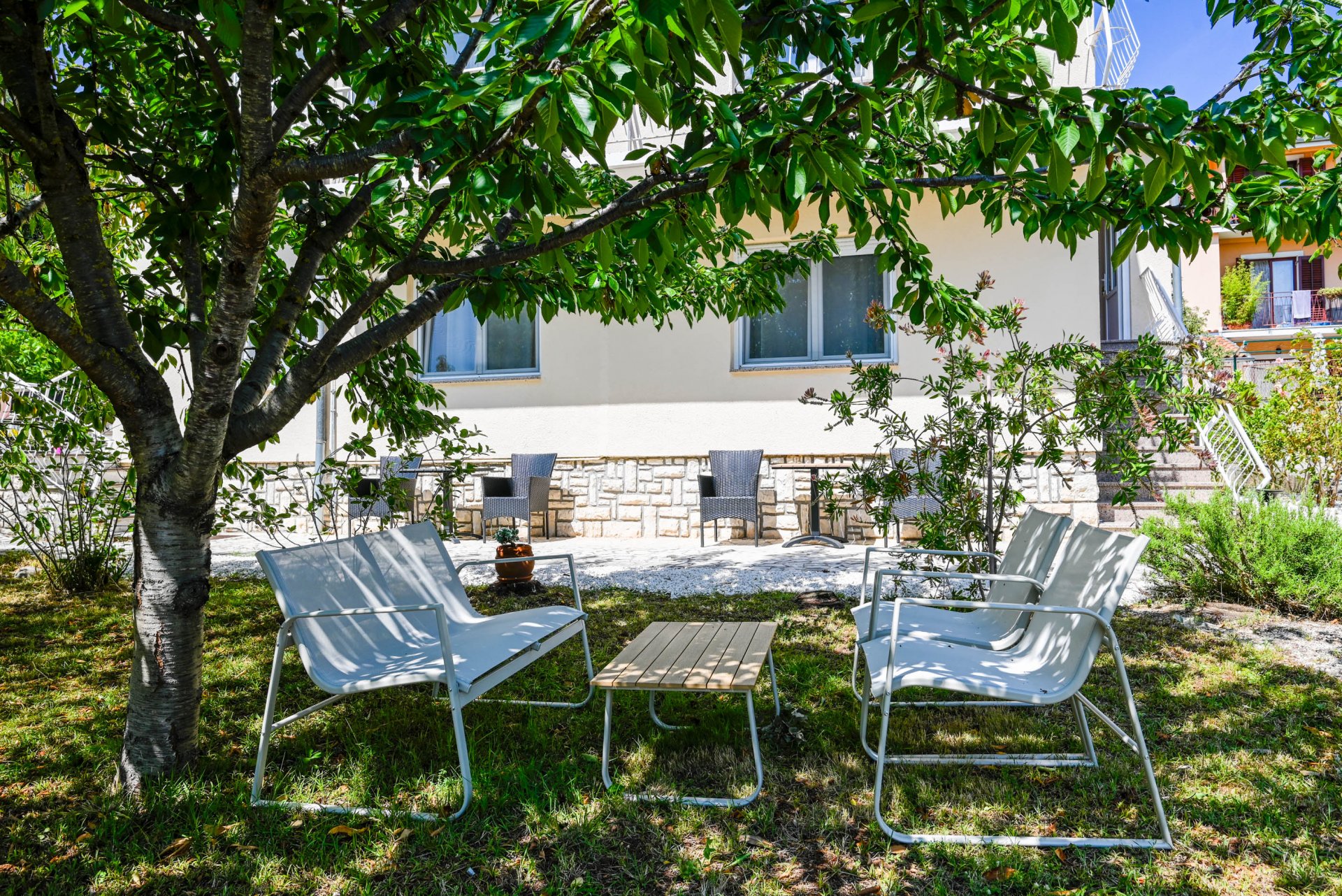 Welcome to our beautiful rental house located at just a minute's walk from the beach and steps away from Rovinj’s famous Martin Horvat Hospital. This charming house features 9 modern and comfortably furnished apartments, perfect for couples, families, or groups looking to enjoy the scenic beauty of Rovinj. Each apartment is fully equipped with air conditioning, free Wi-Fi, and tasteful decor that blends comfort with Mediterranean style. Whether you're looking for a cozy retreat or a spacious base for your holiday adventures, you'll find the right fit here: 4 Studio Apartments – Ideal for solo travelers or couples 3 One-Bedroom Apartments – Perfect for small families or longer stays 2 Two-Bedroom Apartments – Spacious options for families or groups The house is well-maintained and offers a peaceful atmosphere, surrounded by greenery and a relaxing coastal vibe.