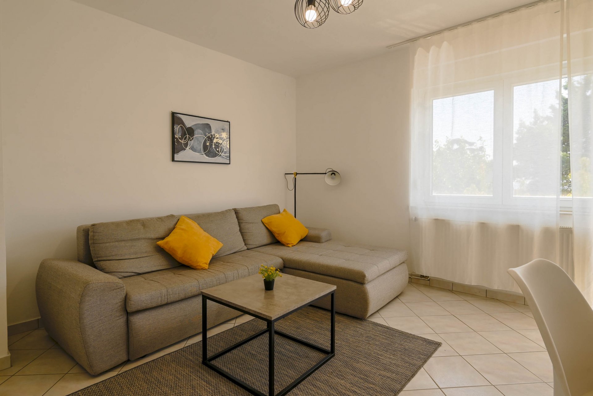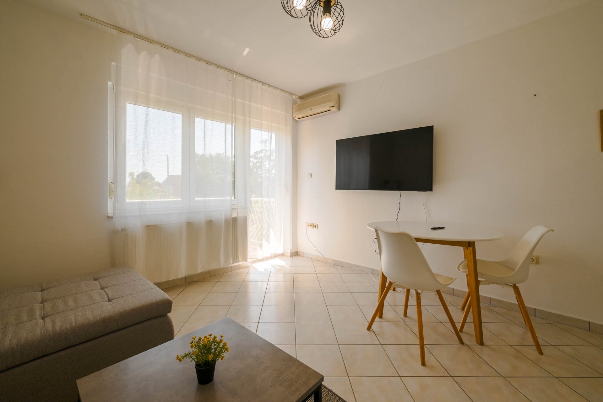 Apartment have one separate bedroom with double bed (160 x 200) and Tv. There is also living room with dinning table and chairs and sofa for additional person. Exit to the balcony. Kitchen is equipped with all necessary to prepare delicious meals. Private bathroom is with shower.