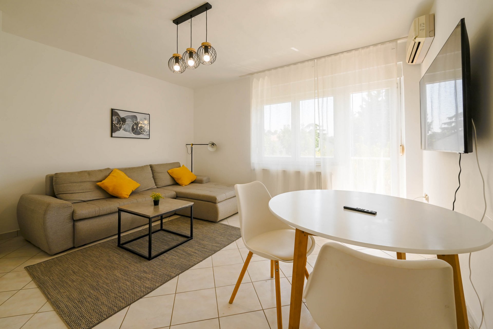 Welcome to our beautiful rental house located at just a minute's walk from the beach and steps away from Rovinj’s famous Martin Horvat Hospital. This charming house features 9 modern and comfortably furnished apartments, perfect for couples, families, or groups looking to enjoy the scenic beauty of Rovinj. Each apartment is fully equipped with air conditioning, free Wi-Fi, and tasteful decor that blends comfort with Mediterranean style. Whether you're looking for a cozy retreat or a spacious base for your holiday adventures, you'll find the right fit here: 4 Studio Apartments – Ideal for solo travelers or couples 3 One-Bedroom Apartments – Perfect for small families or longer stays 2 Two-Bedroom Apartments – Spacious options for families or groups The house is well-maintained and offers a peaceful atmosphere, surrounded by greenery and a relaxing coastal vibe.